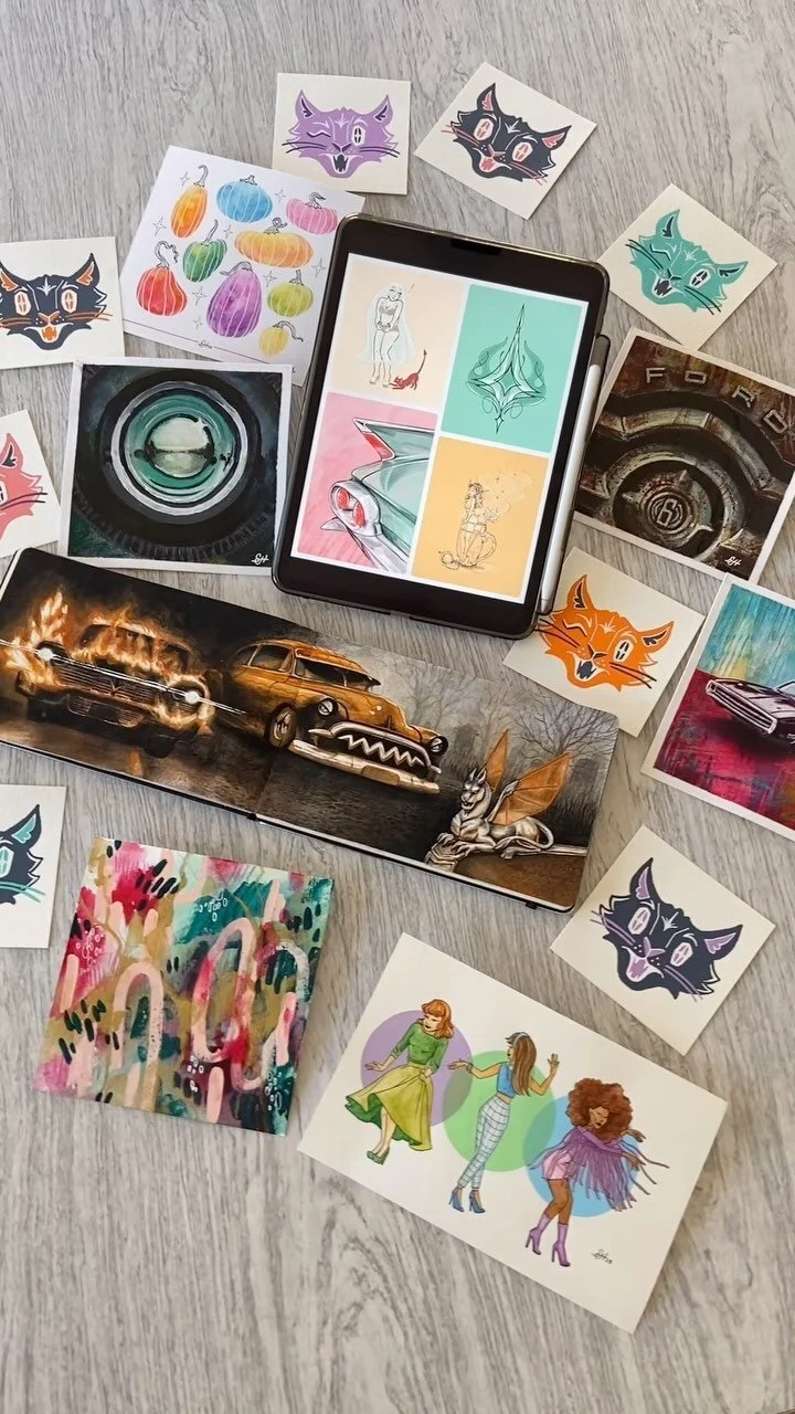 When not in my studio, you can find me at local classic car shows, poking around in antique & vintage shops, enjoying the outdoors in the warmer months, snuggling with my husband + our two cats, video gaming, or starting my twentieth re-read of the Inheritance Cycle.
